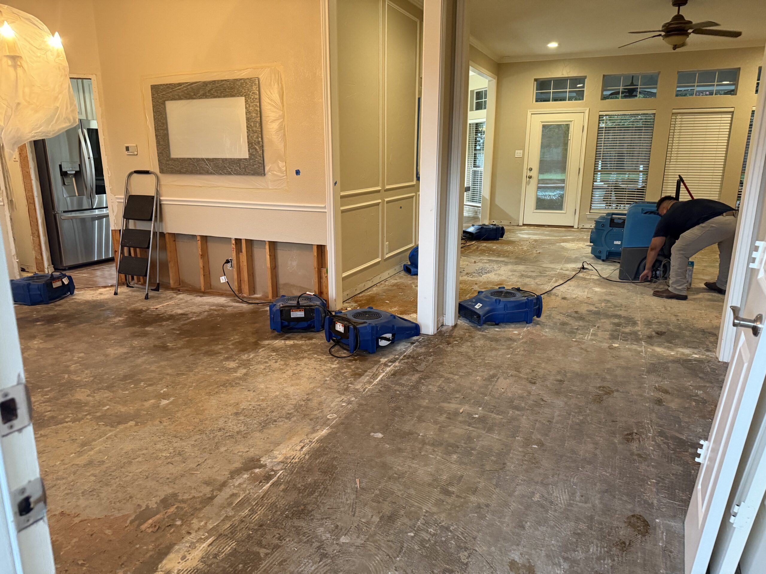 Dehumidifiers work alongside air movement to pull moisture out of these hidden spaces. This balanced approach helps dry the structure evenly and reduces the risk of mold returning later.